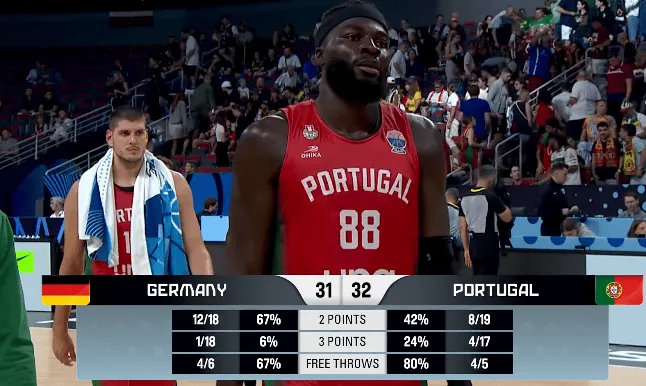 虎扑09月06日讯 男篮欧锦赛淘汰赛,德国对阵葡萄牙的比赛正在进行中。